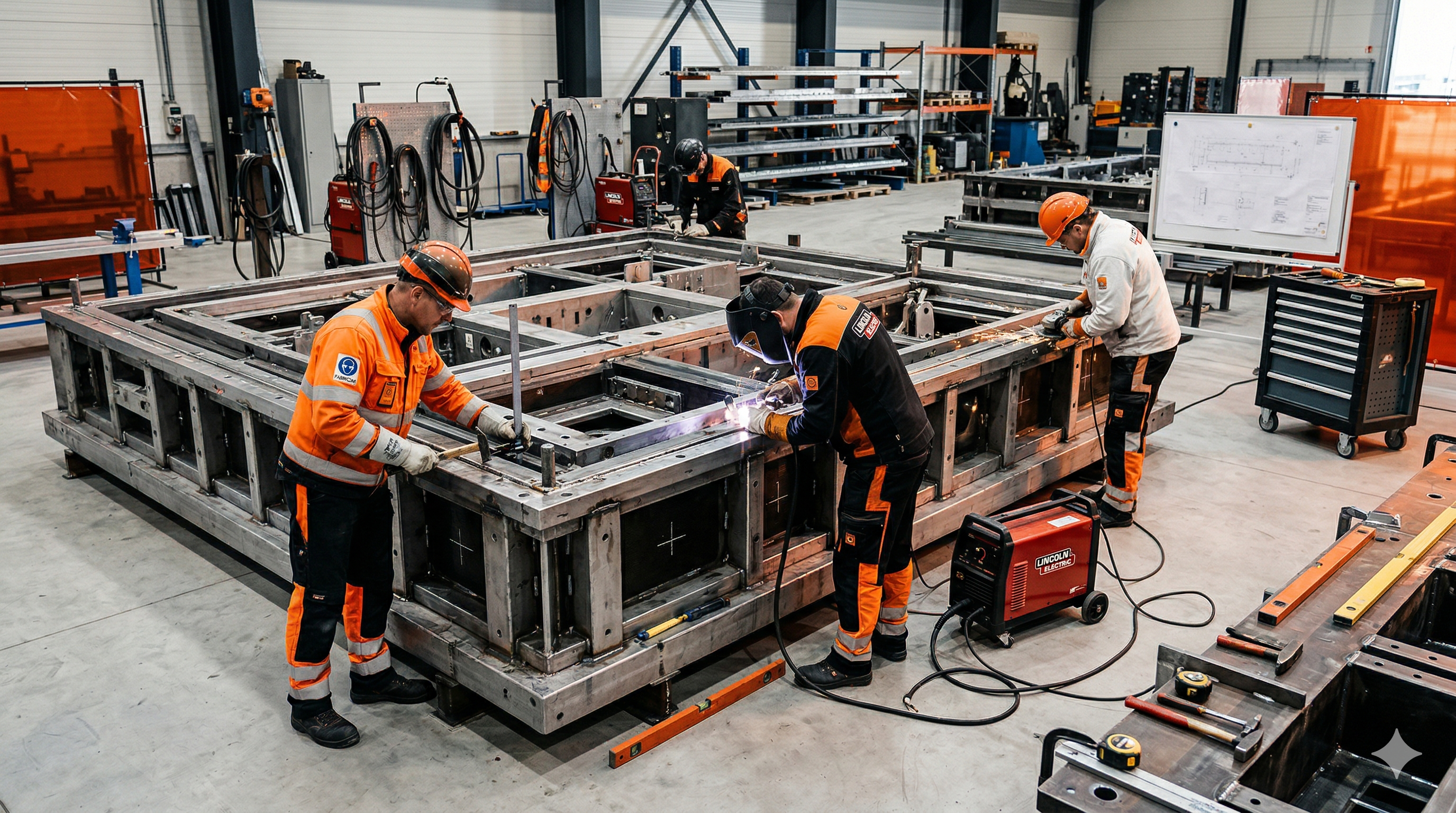 Precision welding and erection of heavy load-bearing steel profiles.